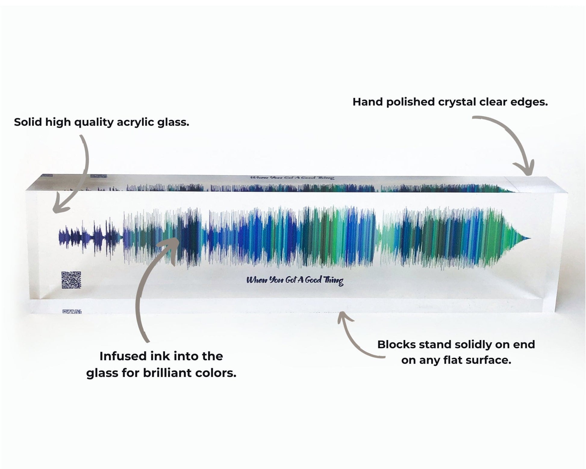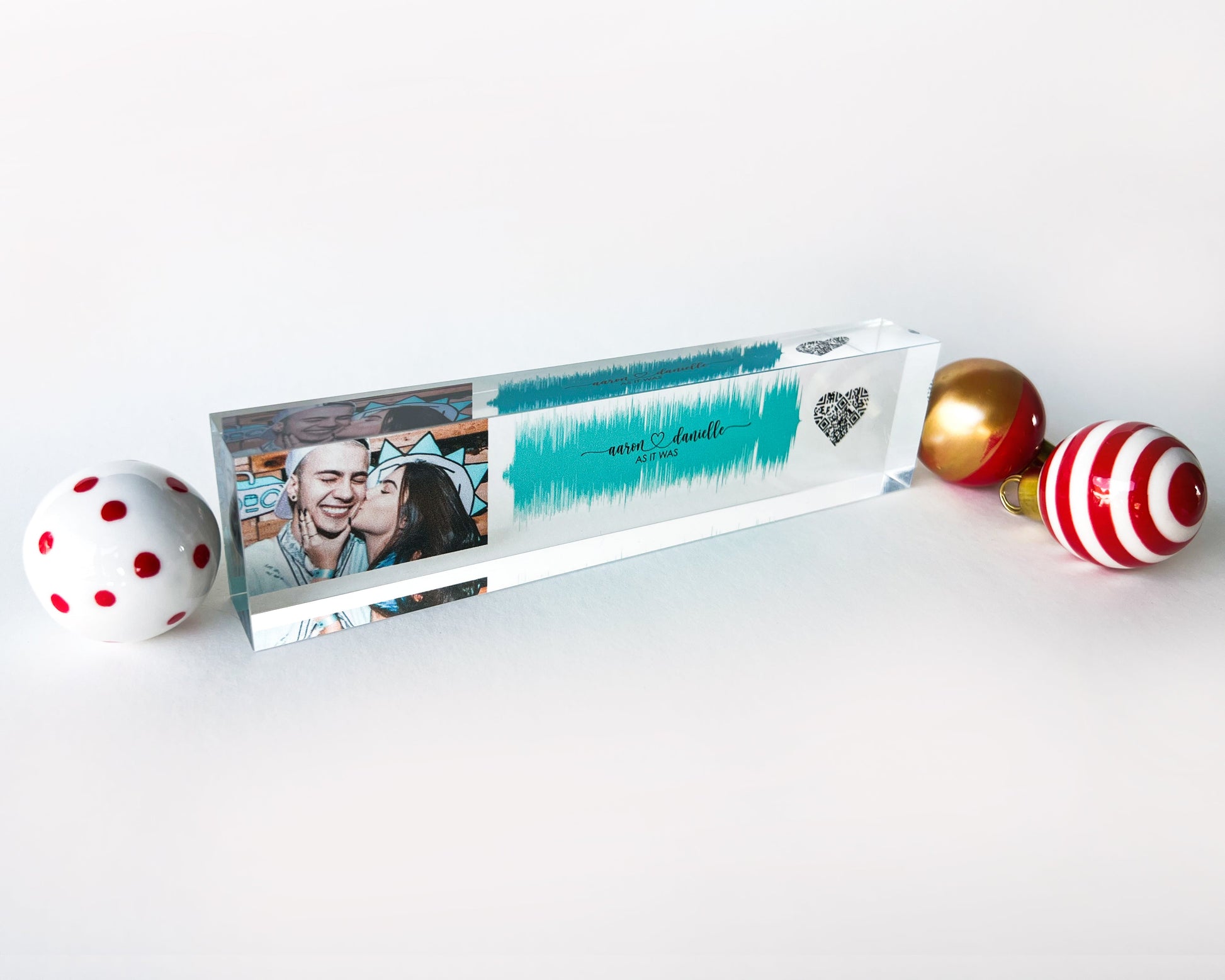 This soundwave art acrylic glass block is customized with your choice of song or voice message and your favorite photo. Makes for a great birthday gift for a boyfriend or for Christmas. He will cherish your sound wave art gift while away in a long distance relationship.