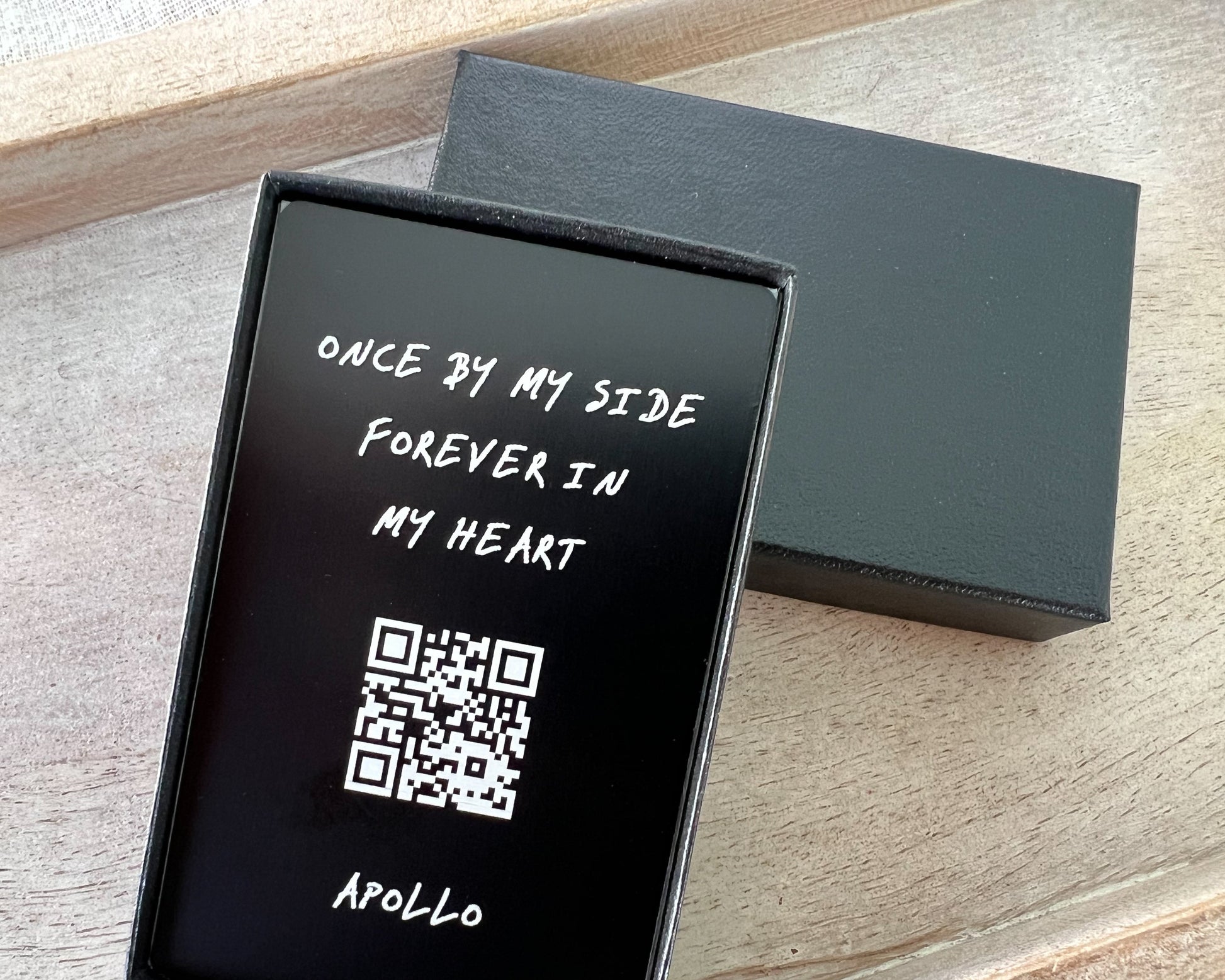 Honor the memory of your beloved dog with an engraved metal wallet card that will last forever. A truly lasting pet loss gift to remember them forever and keep them close. Choose from a variety of options for each side of the card. Makes for a thoughtful pet memorial gift for a dog dad or dog mom.