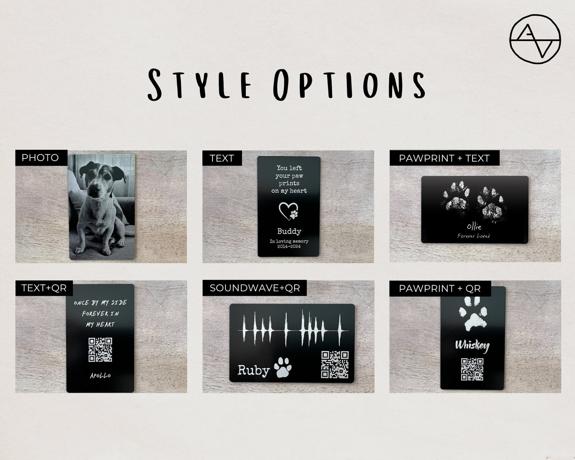 The QR code in the example allows you to preserve the bark or special sound of your pet and can be scanned to play the audio recording anytime.